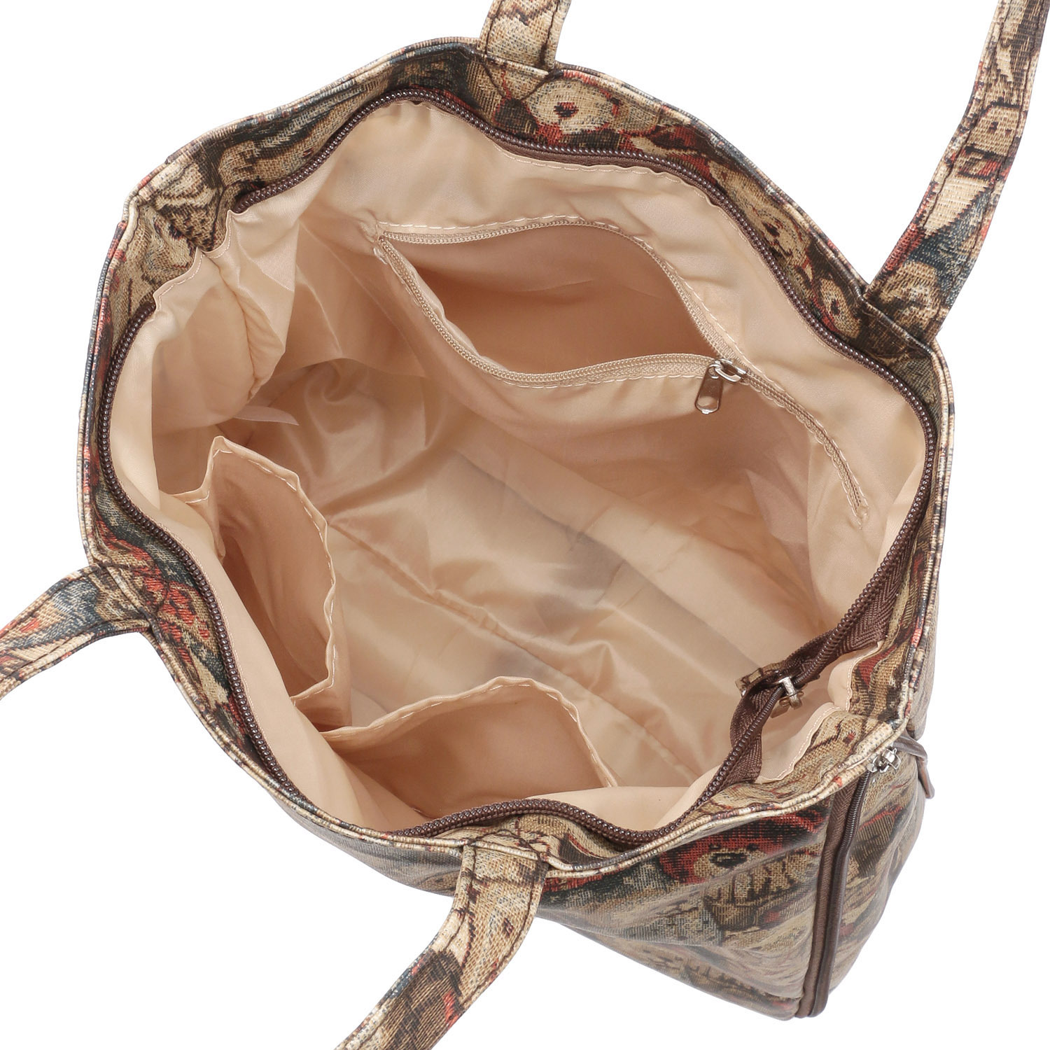 這款實用手提包採用拉鍊設計,寬度可調整。