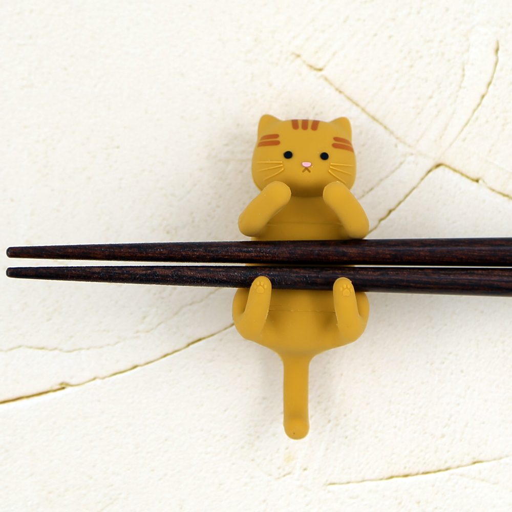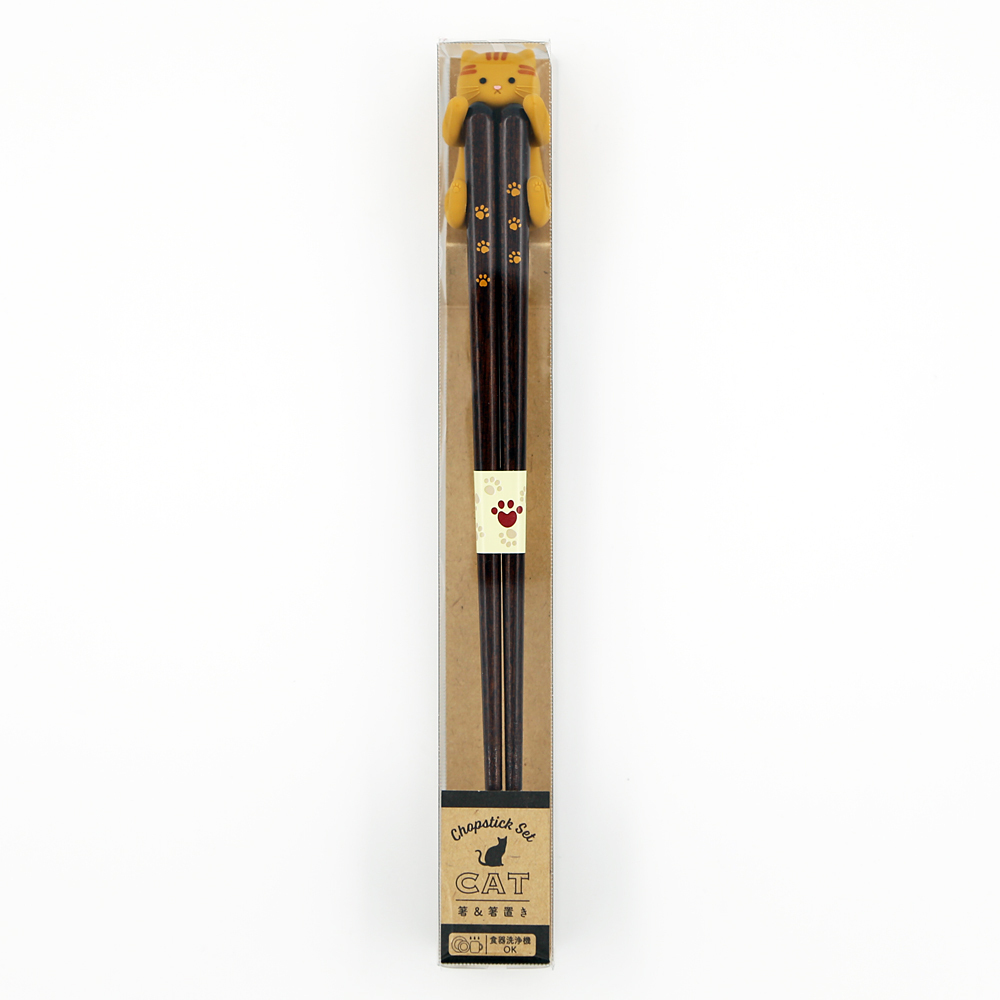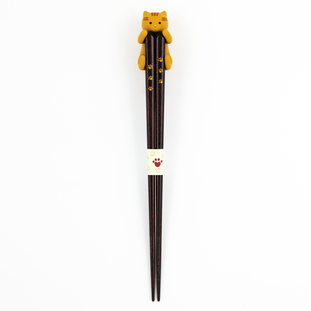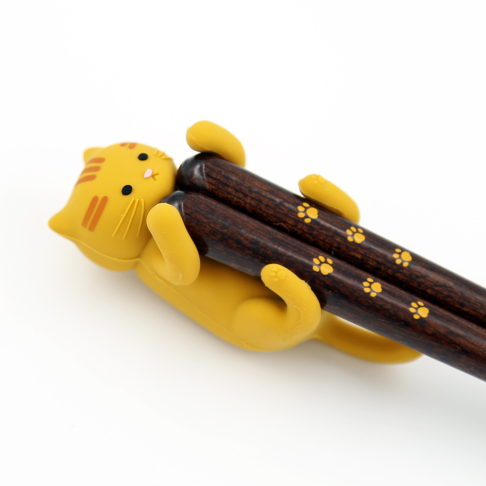 筷子上有一隻可愛的貓。貓貓在使用時可以作為筷子架,收納時可以作為支架放在筷子上。