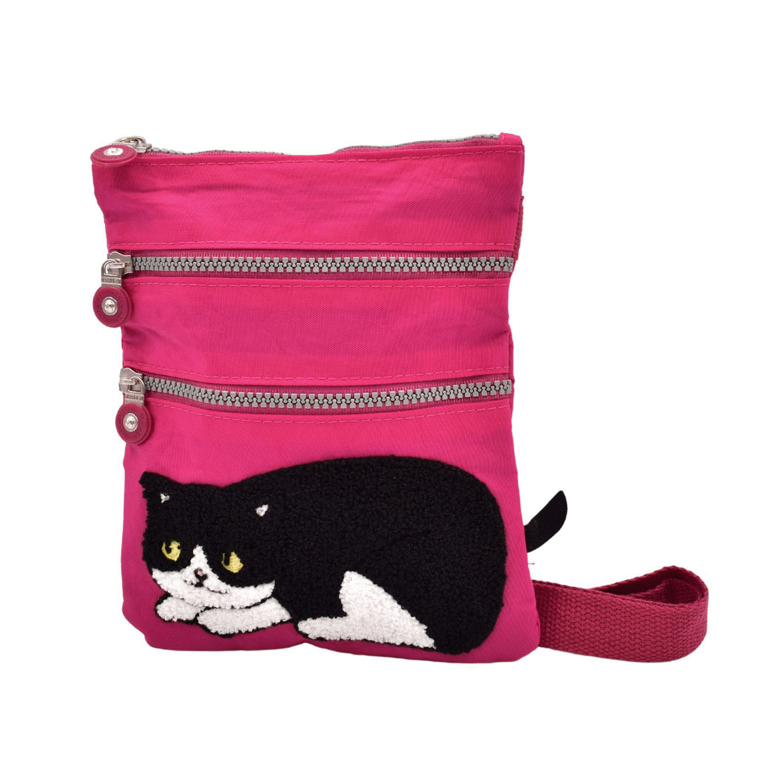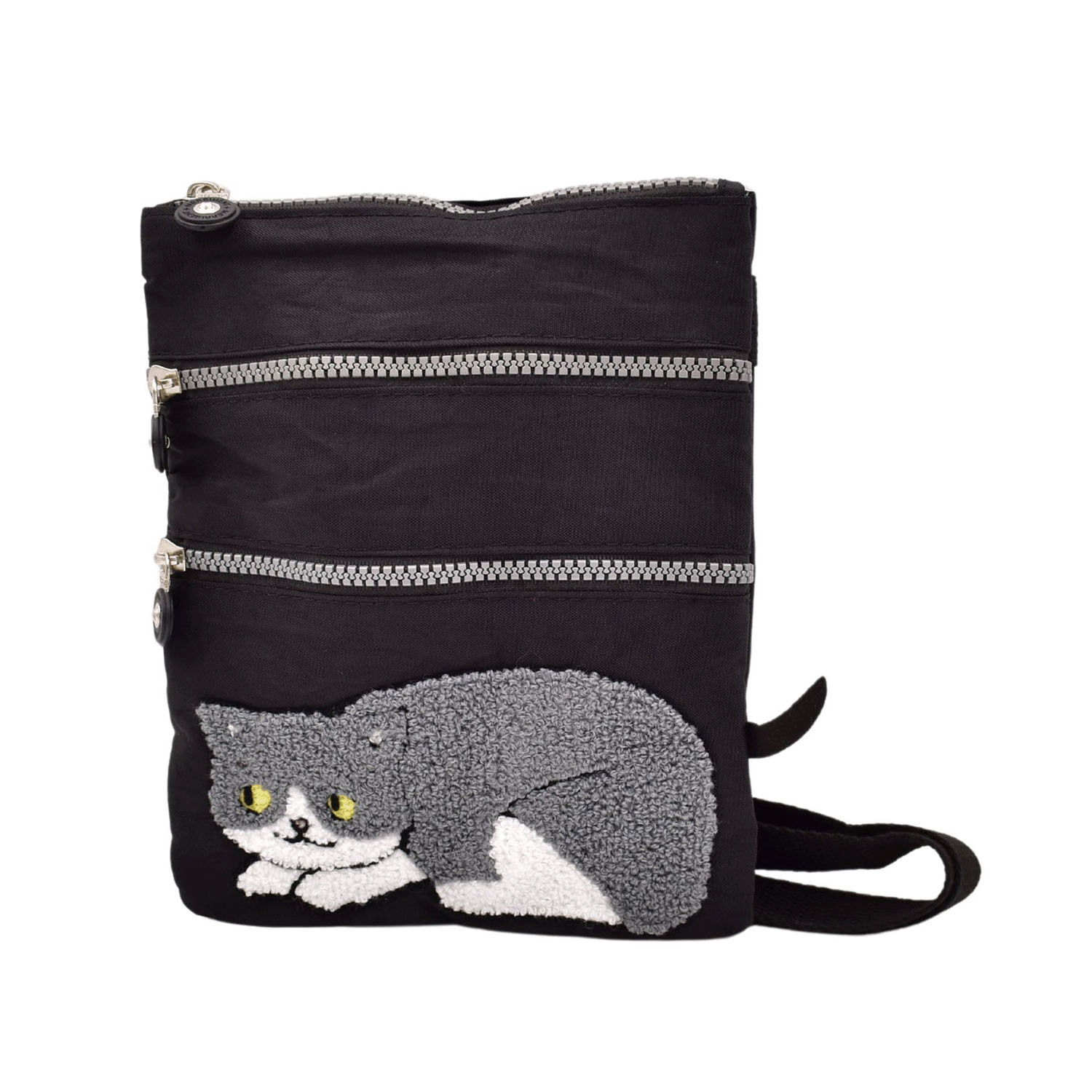 這款單肩包飾有可愛蓬鬆的貓咪刺繡。