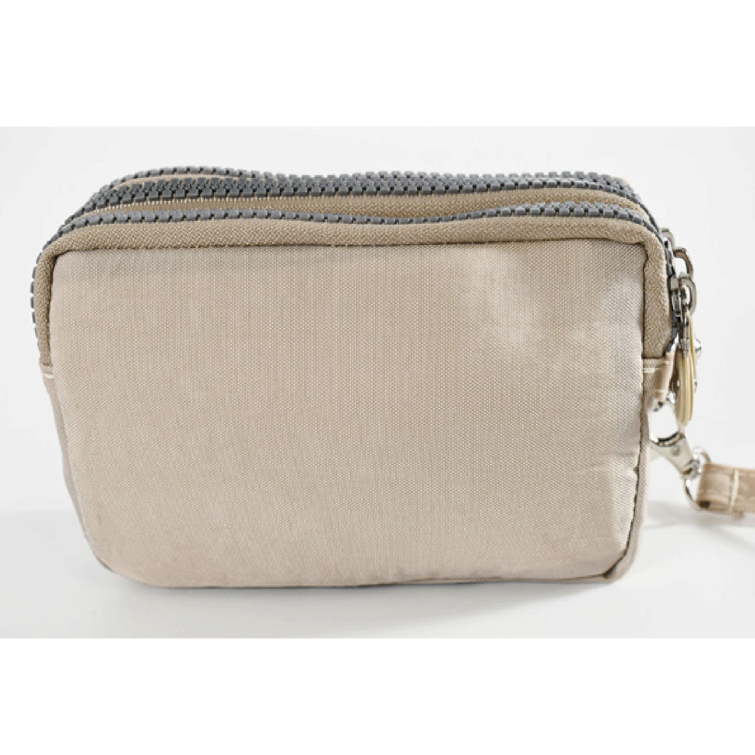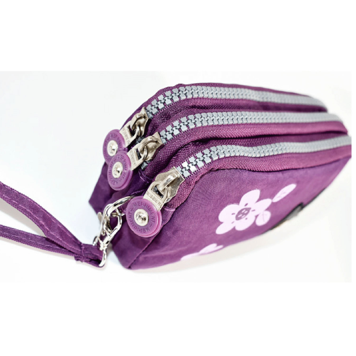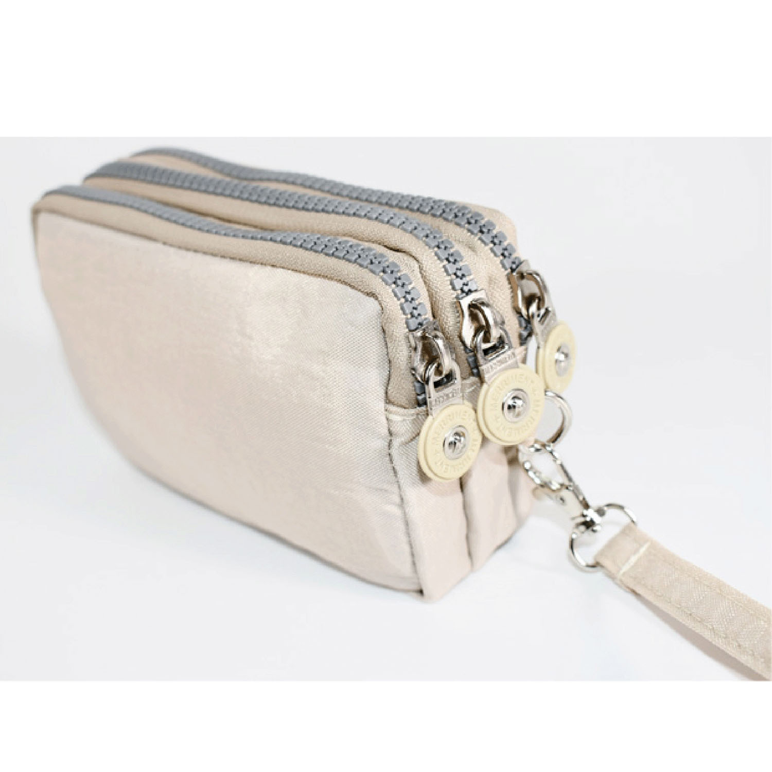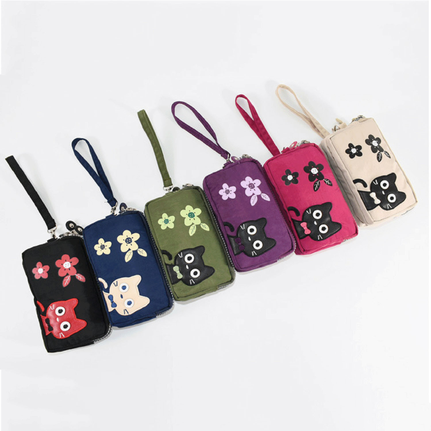 這款小包採用可愛的貓咪圖案,配有三個拉鍊。