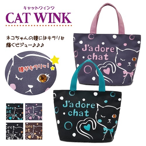 以可愛的貓為插圖的閃閃發光的寶石眼睛手提包♪