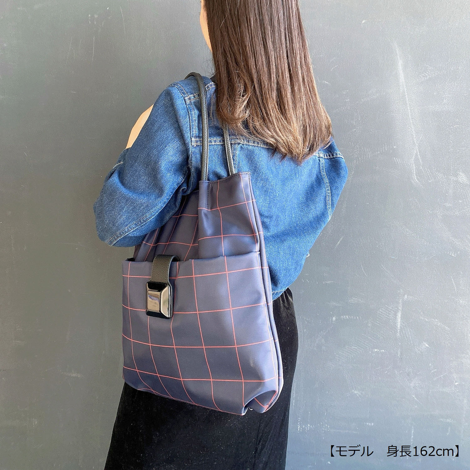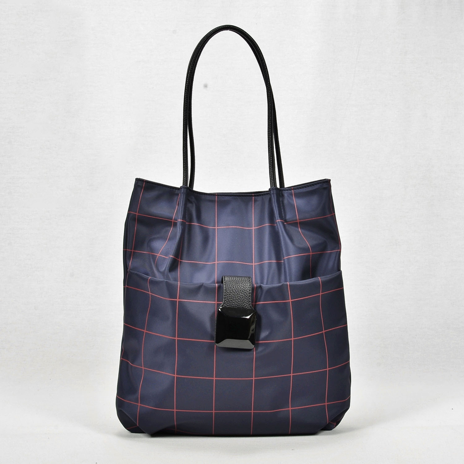 這款托特包飾有精緻的格紋圖案,展現精緻優雅。