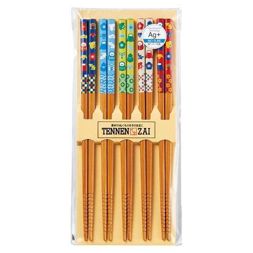 一套5雙銀離子抗菌筷子,可愛的流行和多彩的吉祥圖案。
