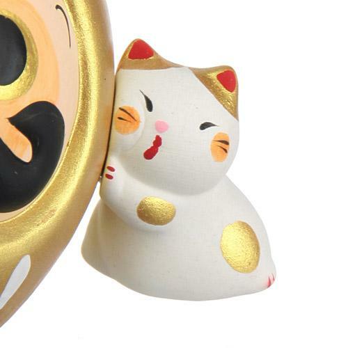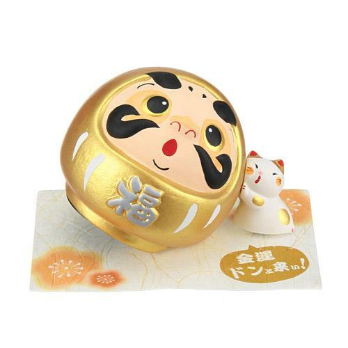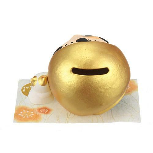 一個可愛的存錢罐,有一隻貓支撐著達摩娃娃。