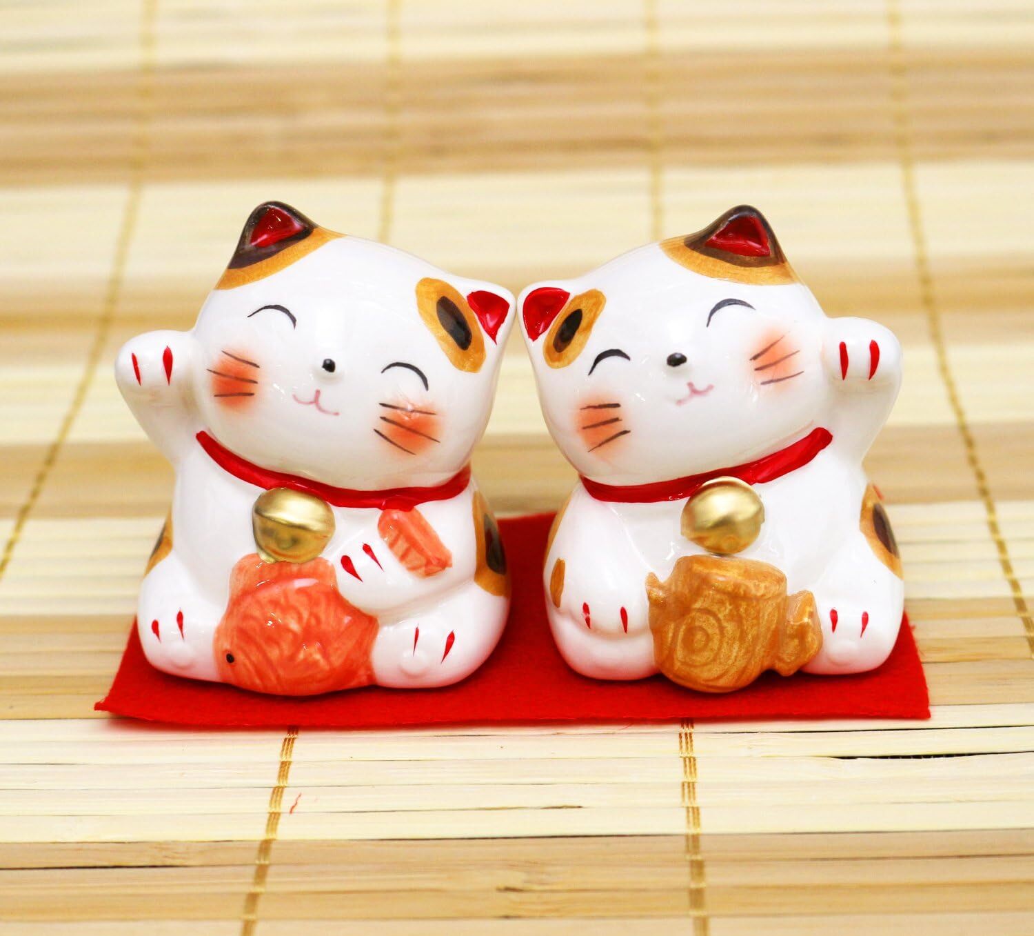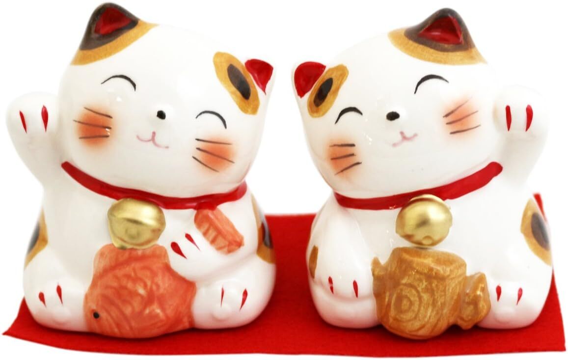 這些招財貓裝扮成七福神中的惠比壽和大黑,祈求好運。