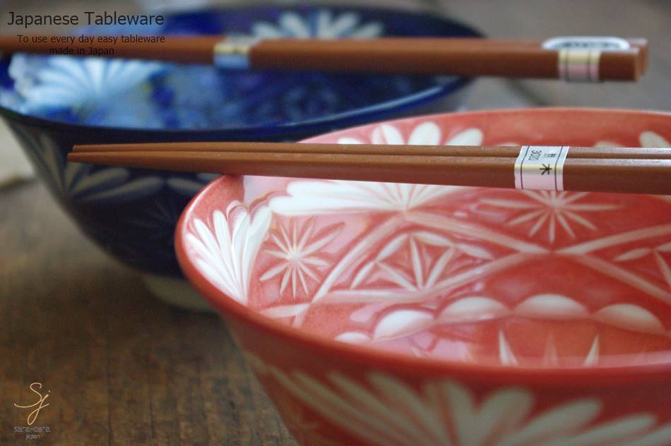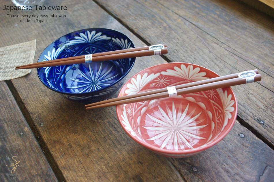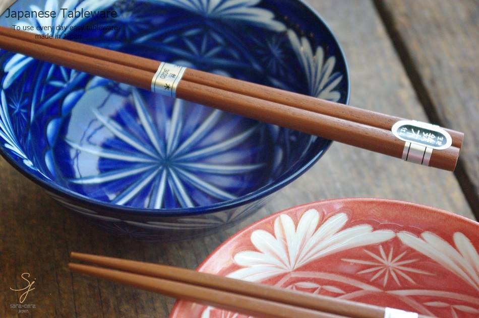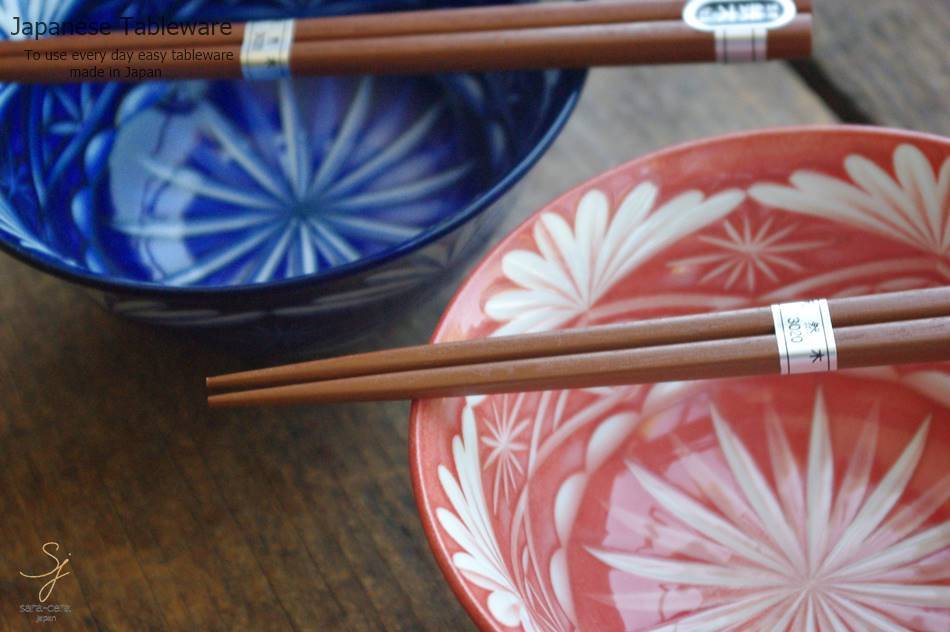 像江戶切子一樣的美麗圖案的一對碗,一對鐵木筷。