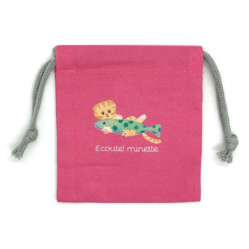 正面有一隻貓的臉,背面有那隻貓的不同圖案,使它成為一個有趣的抽繩包。