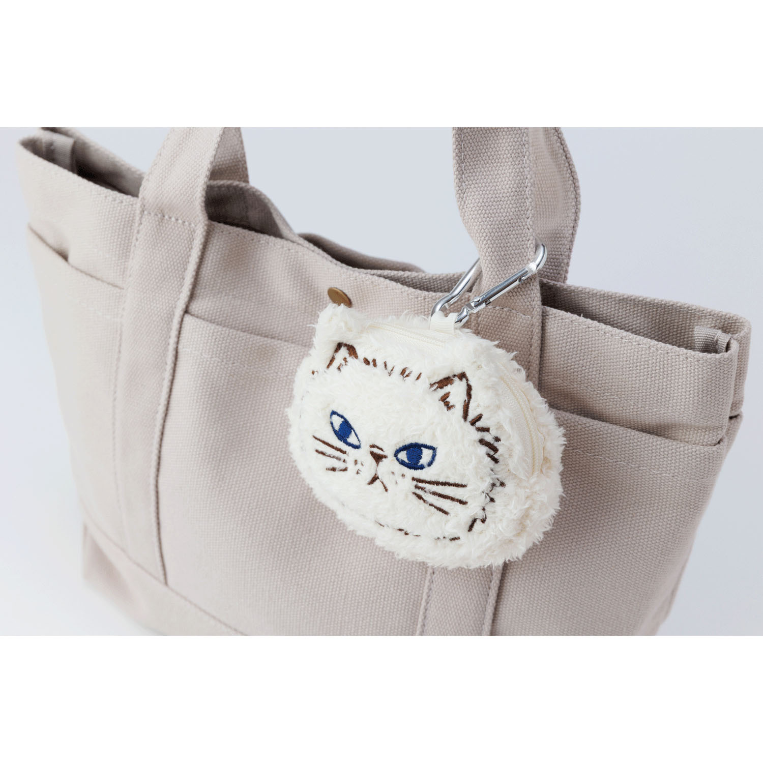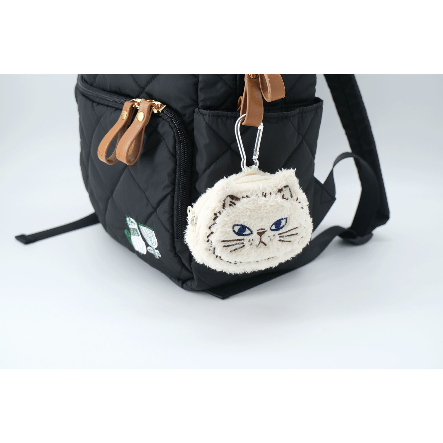 它配有登山扣,可以掛在包包上當鑰匙勾。