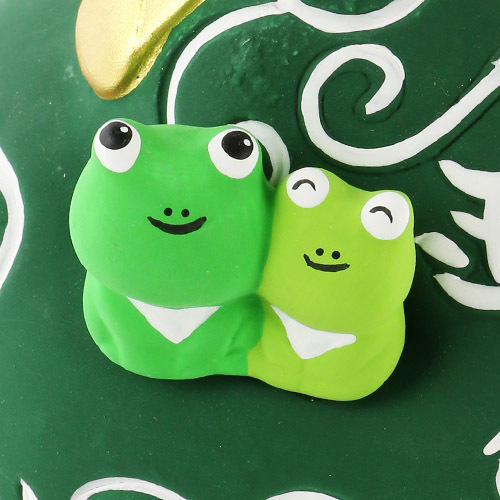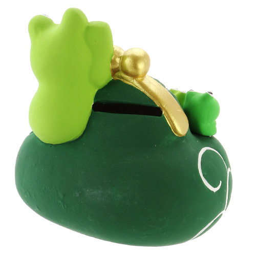 頂部的青蛙舉起右手,彷彿在召喚金錢湧入,使其成為一個可以累積大量金錢的存錢筒。