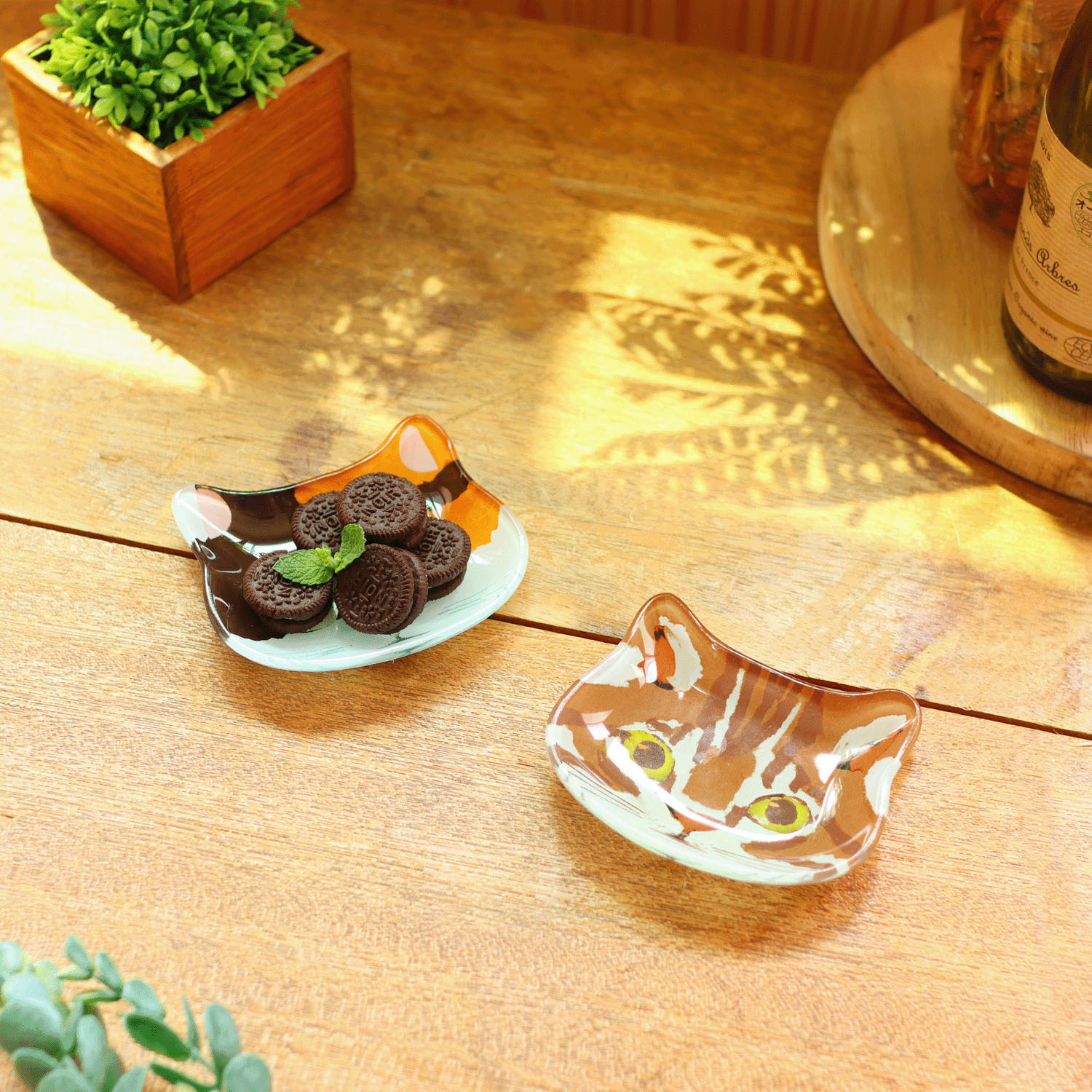 貓臉迷你玻璃小盤造型別緻。