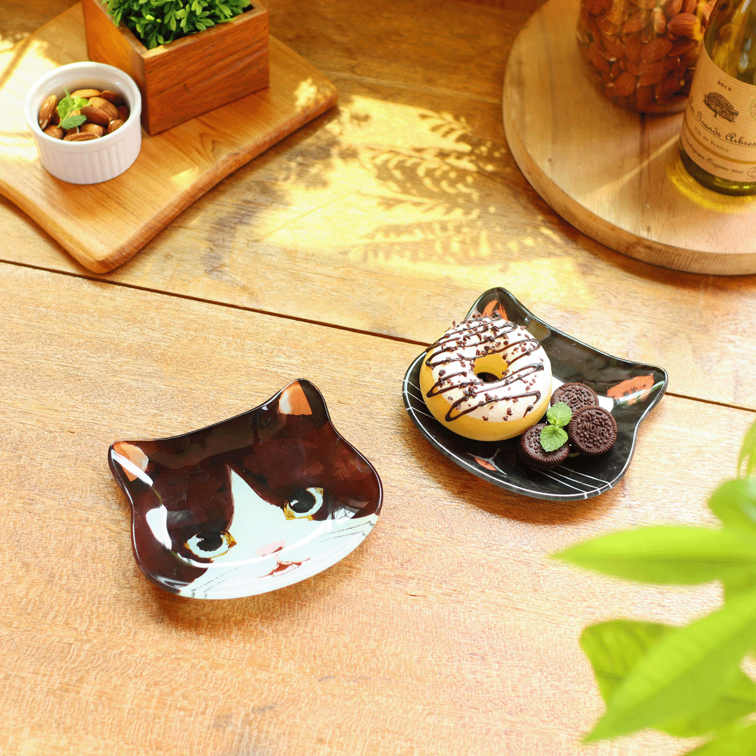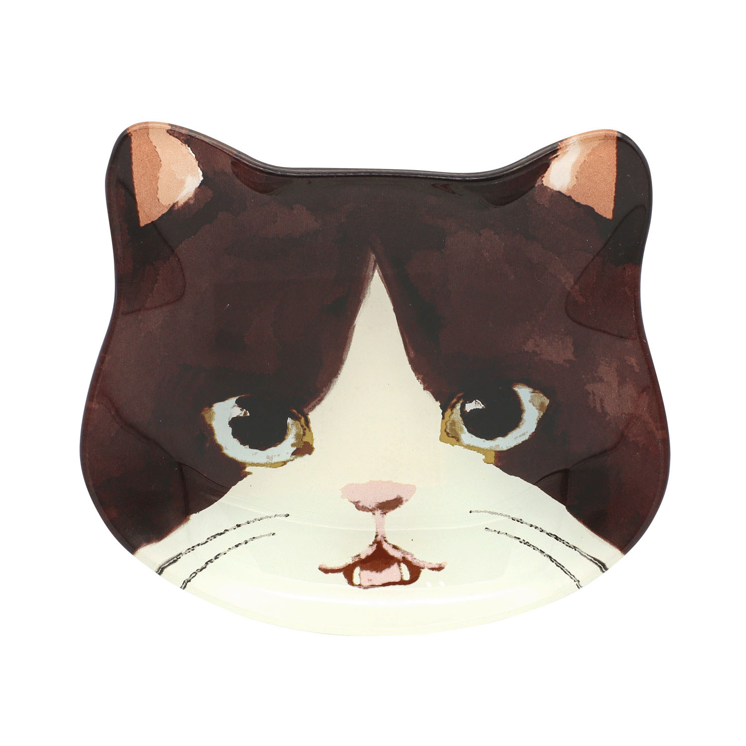 這款貓臉玻璃盤造型別緻。可愛的表情為您的餐桌或房間增添了一抹俏皮感。