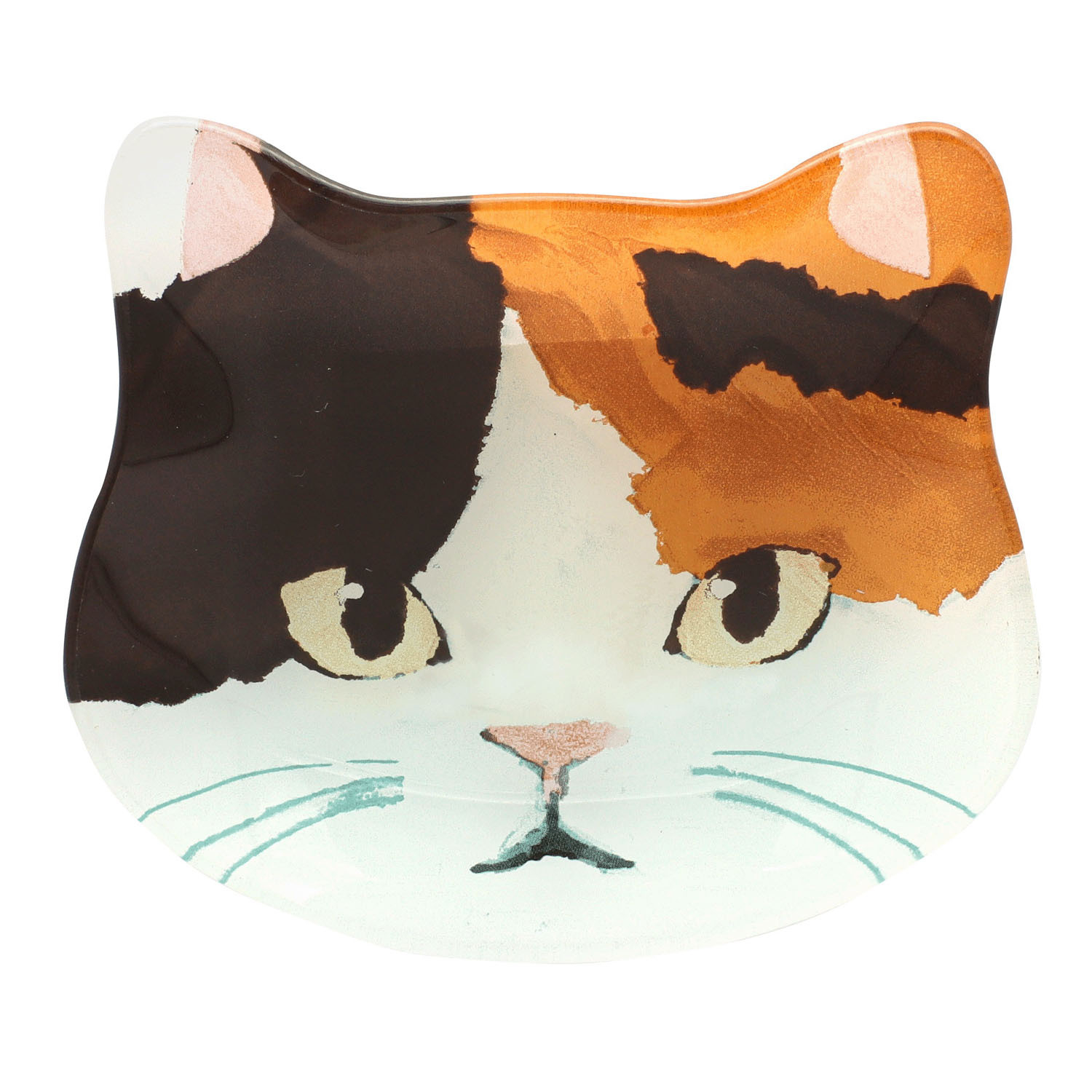 這款貓臉玻璃盤造型別緻。可愛的表情為您的餐桌或房間增添了一抹俏皮感。