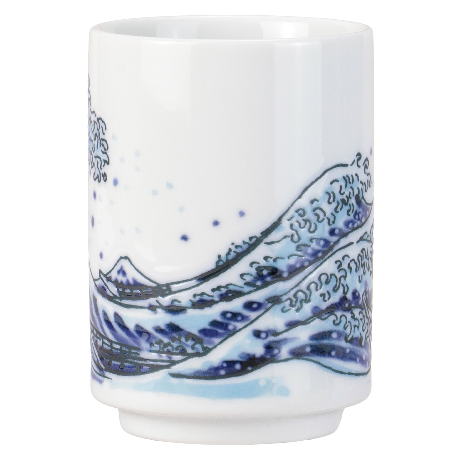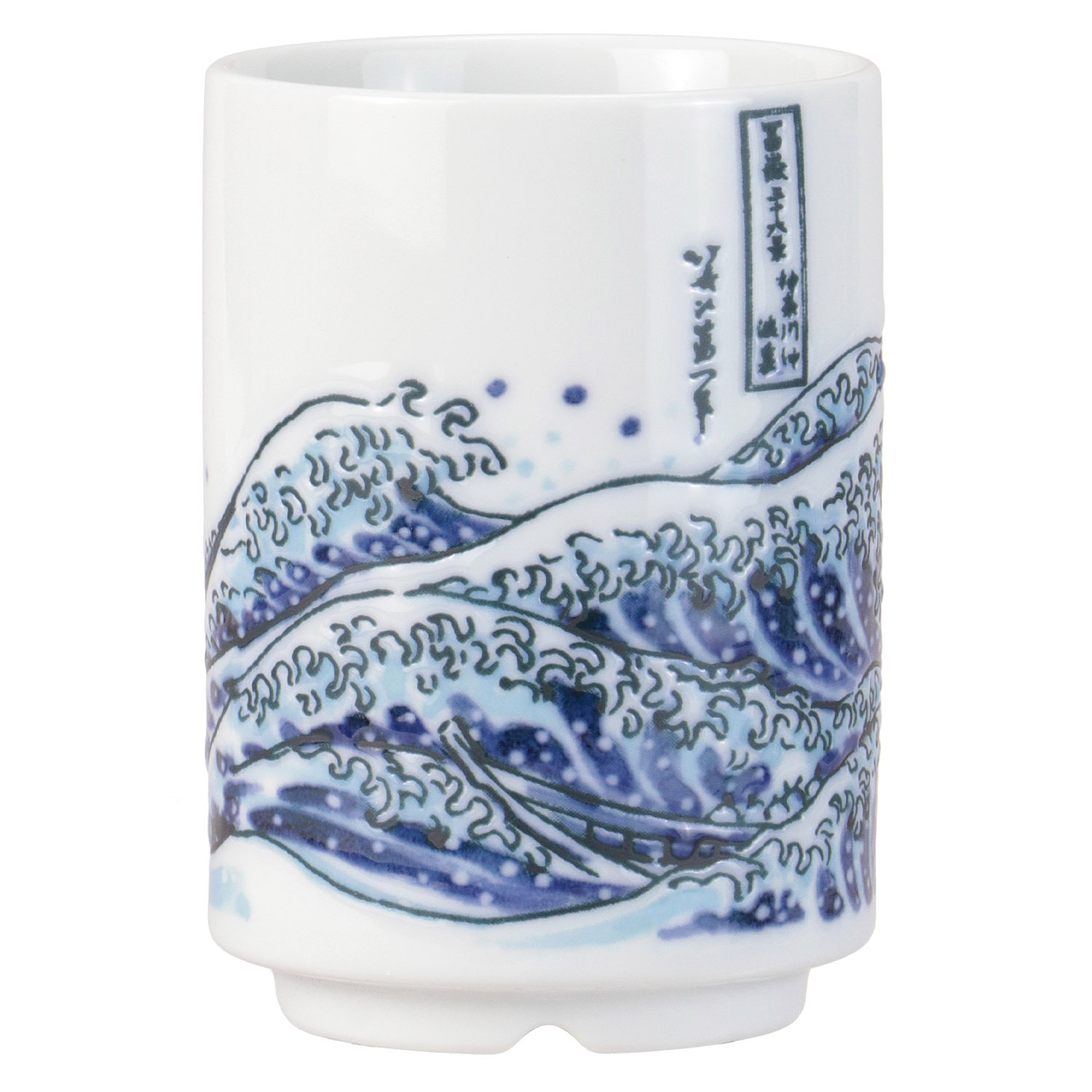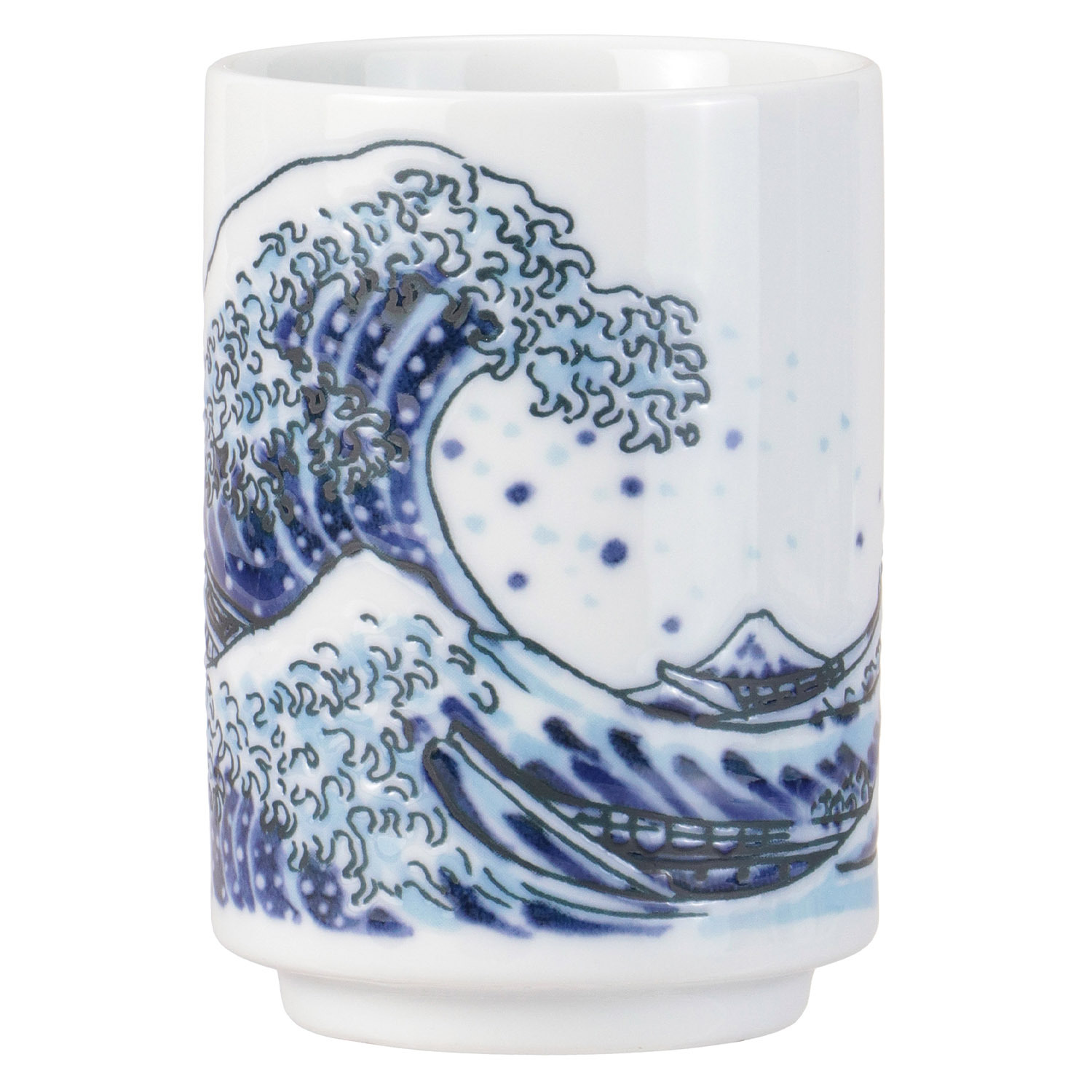 這款茶杯以防水釉面和飽滿的釉色,展現了葛飾北齋的名作《神奈川衝浪裡》和《晴空萬裡》。