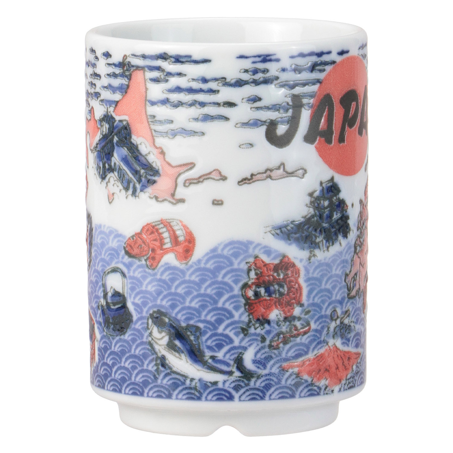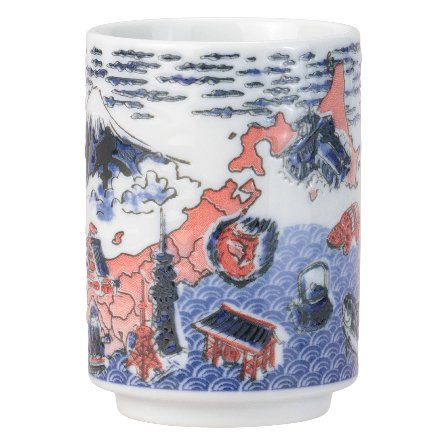 杯身上的都道府縣圖案和當地特色美食輪廓均採用防水材質,賦予茶杯粗獷的質感。