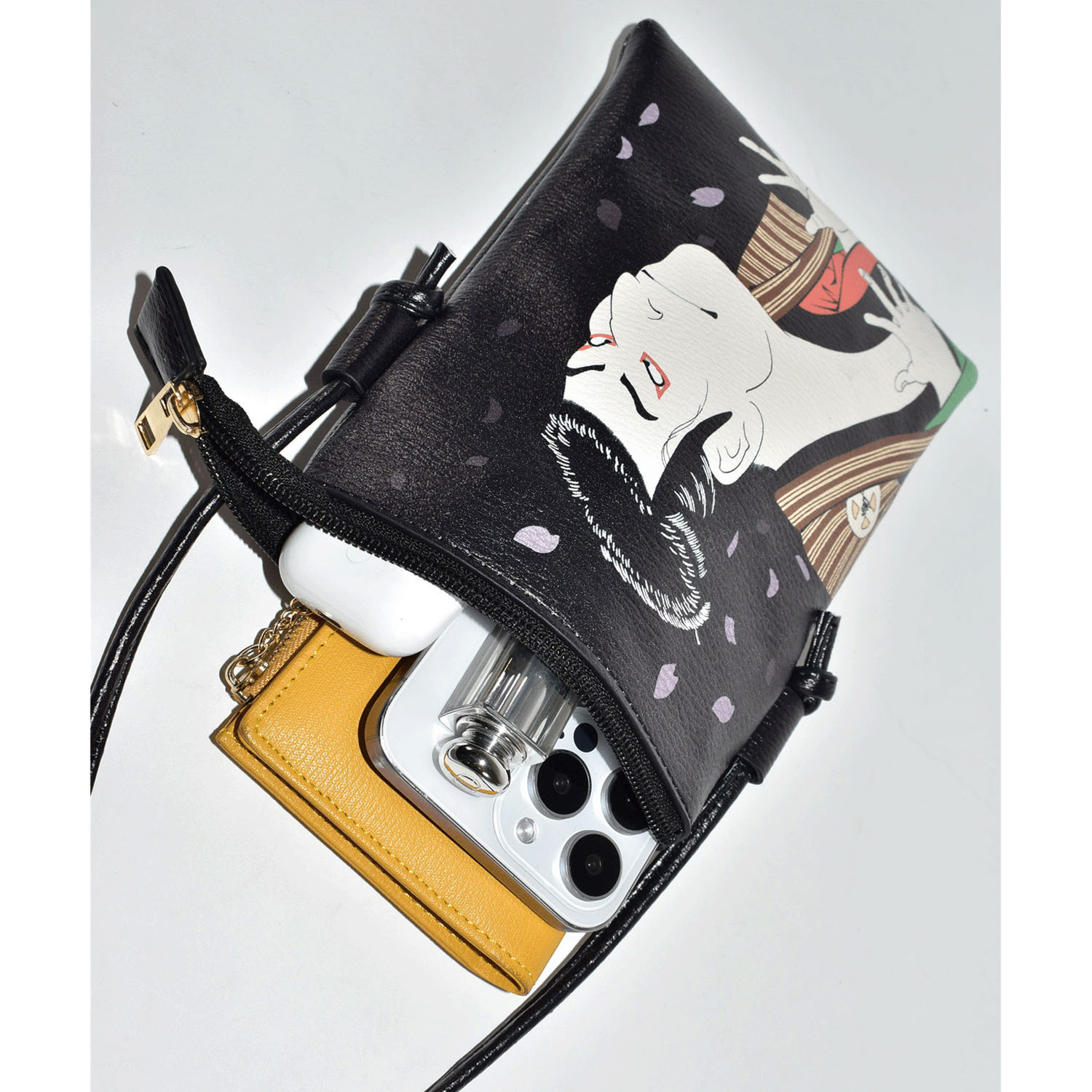 這款輕薄小巧的包款飾有醒目的日本和式圖案,非常適合攜帶必需品。