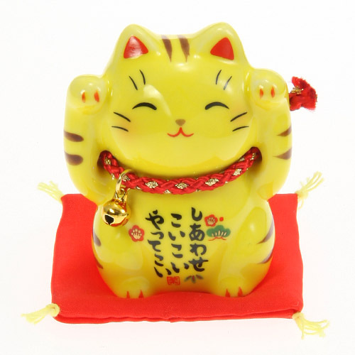貓的肚子上寫著“幸福來了來了”,可愛地邀請著好運。