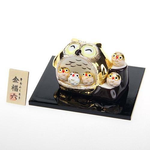 六隻閃亮的金色貓頭鷹聚集並邀請好運。