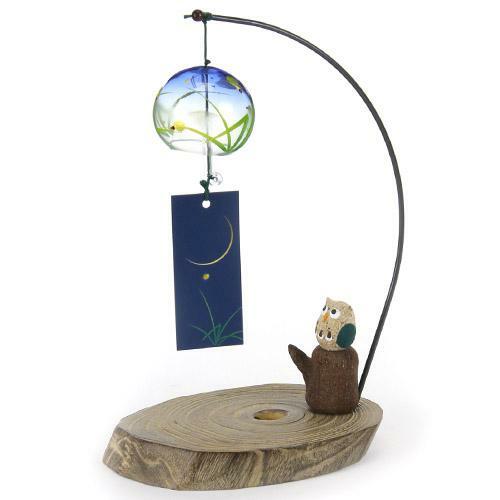 日本製【喜多方】會津桐蒔繪手作 桌面風鈴-螢火蟲和貓頭鷹