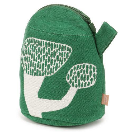 一個帶有扣板的小袋,與一個可愛的形狀和冒號的手提包的圖案相匹配。