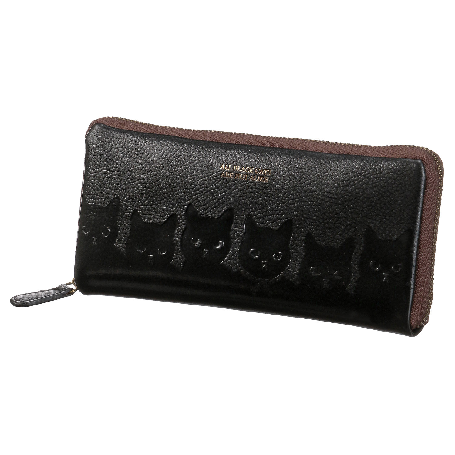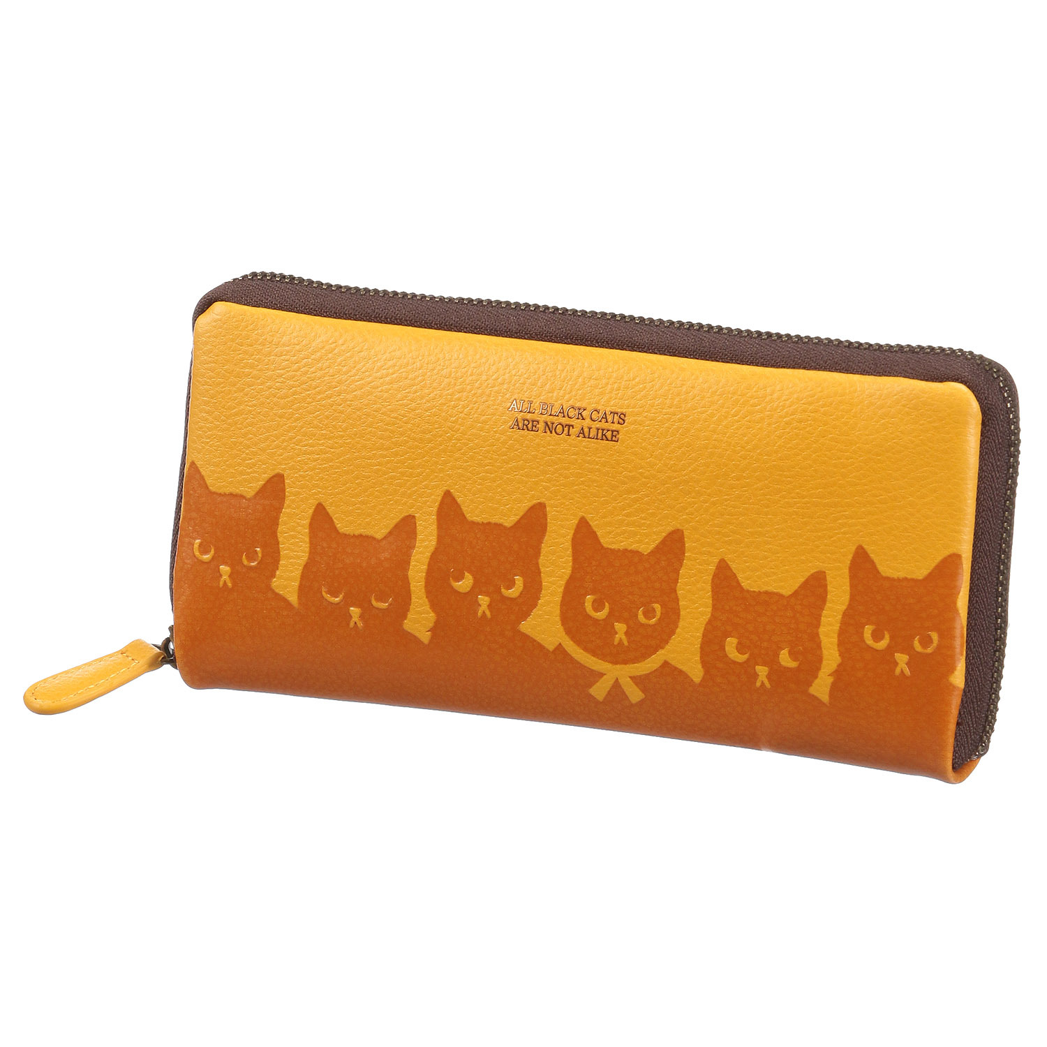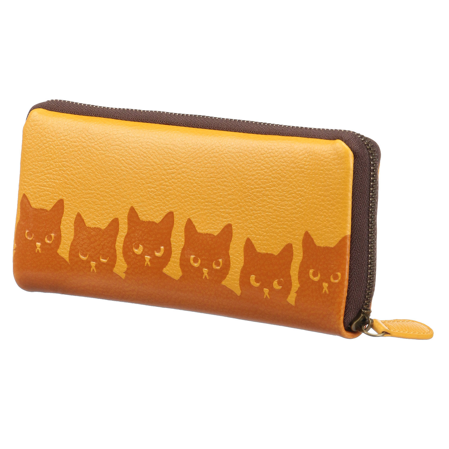 這款長版皮夾飾有六隻可愛貓咪的壓花圖案。