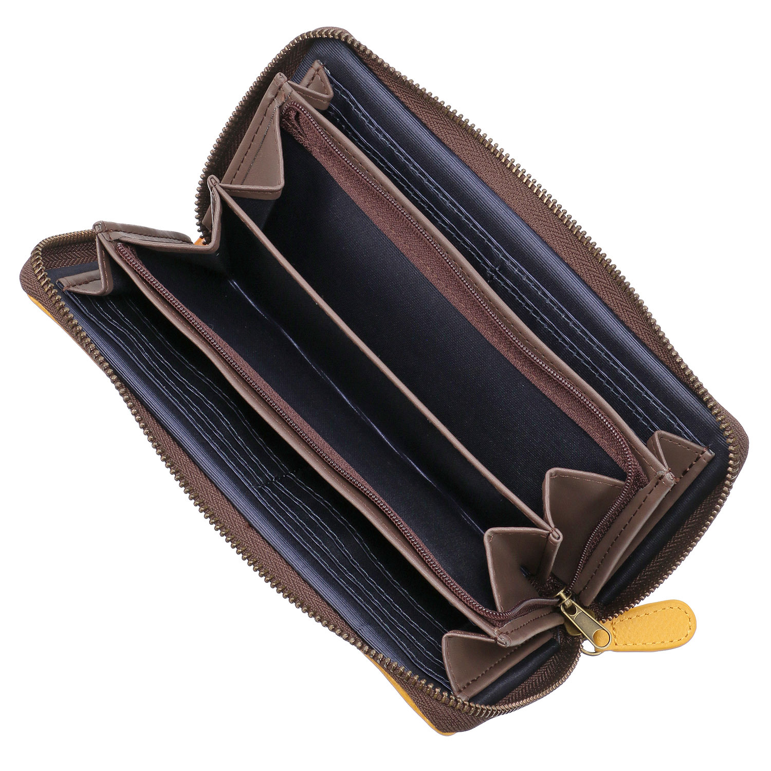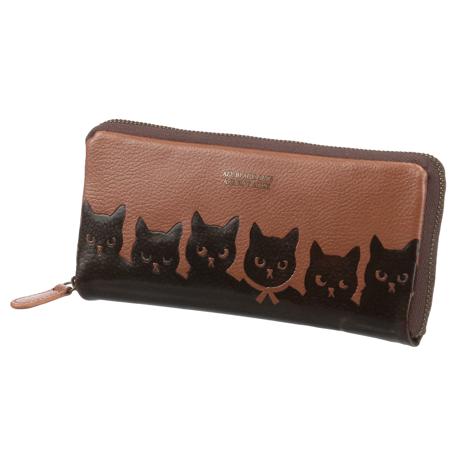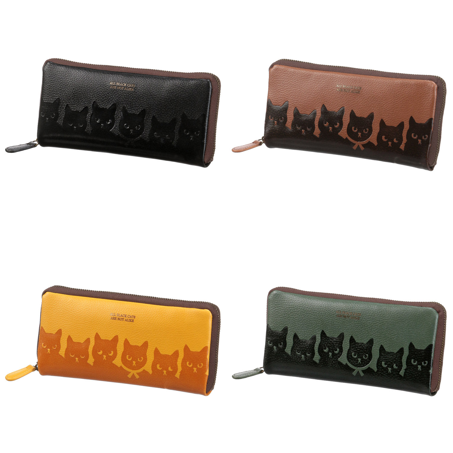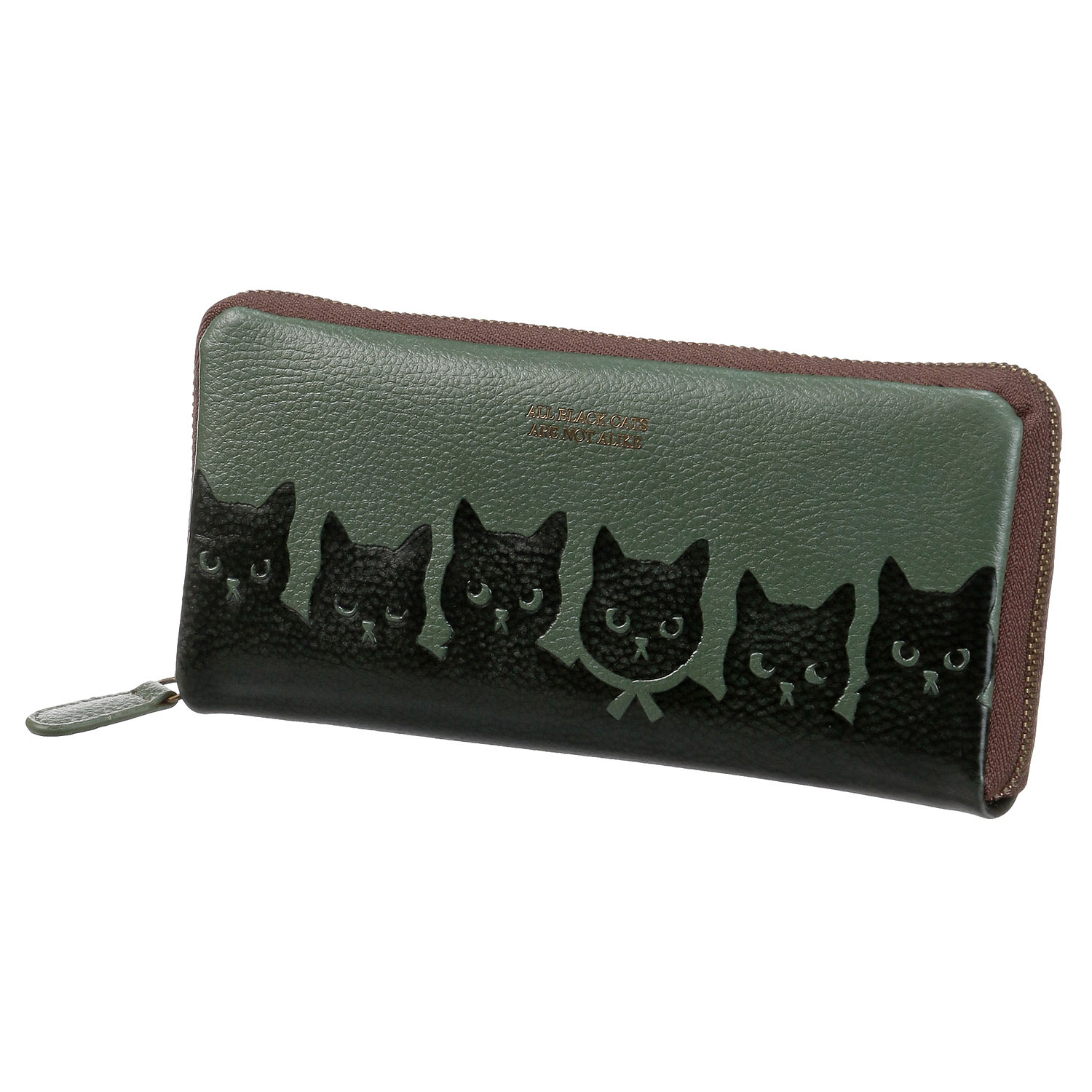 這款長版皮夾飾有六隻可愛貓咪的壓花圖案。