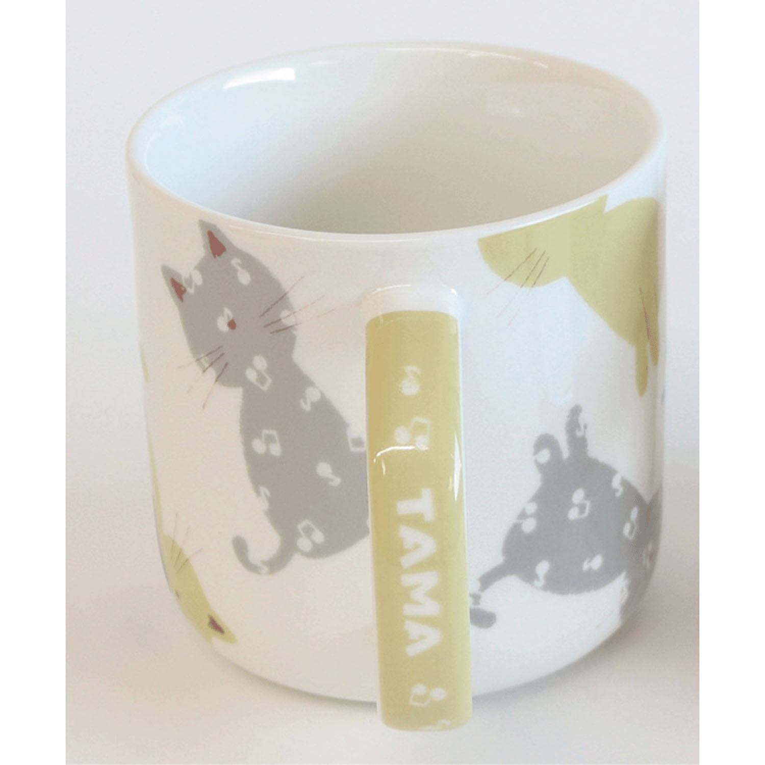 這款可愛的馬克杯印有 Tama-chan 的輪廓和音符圖案。