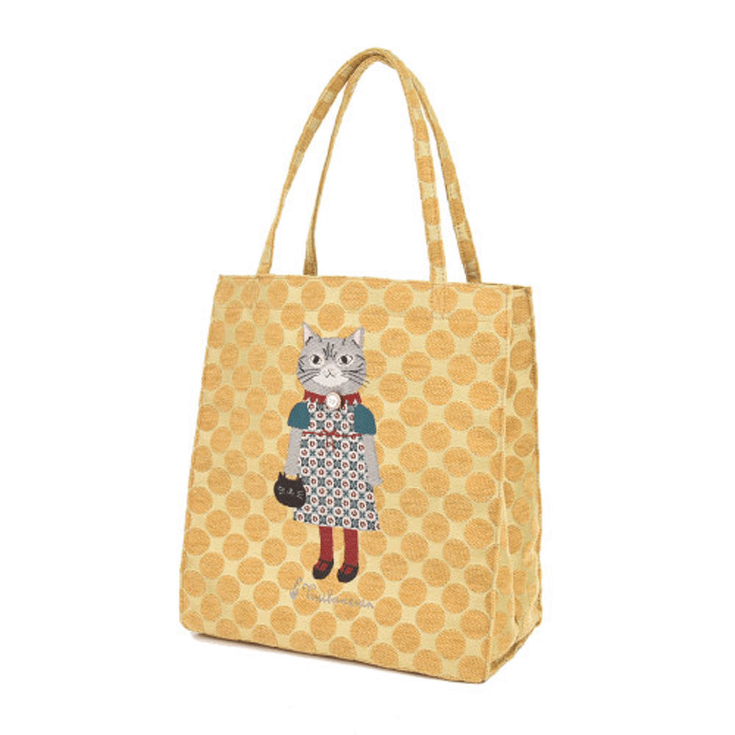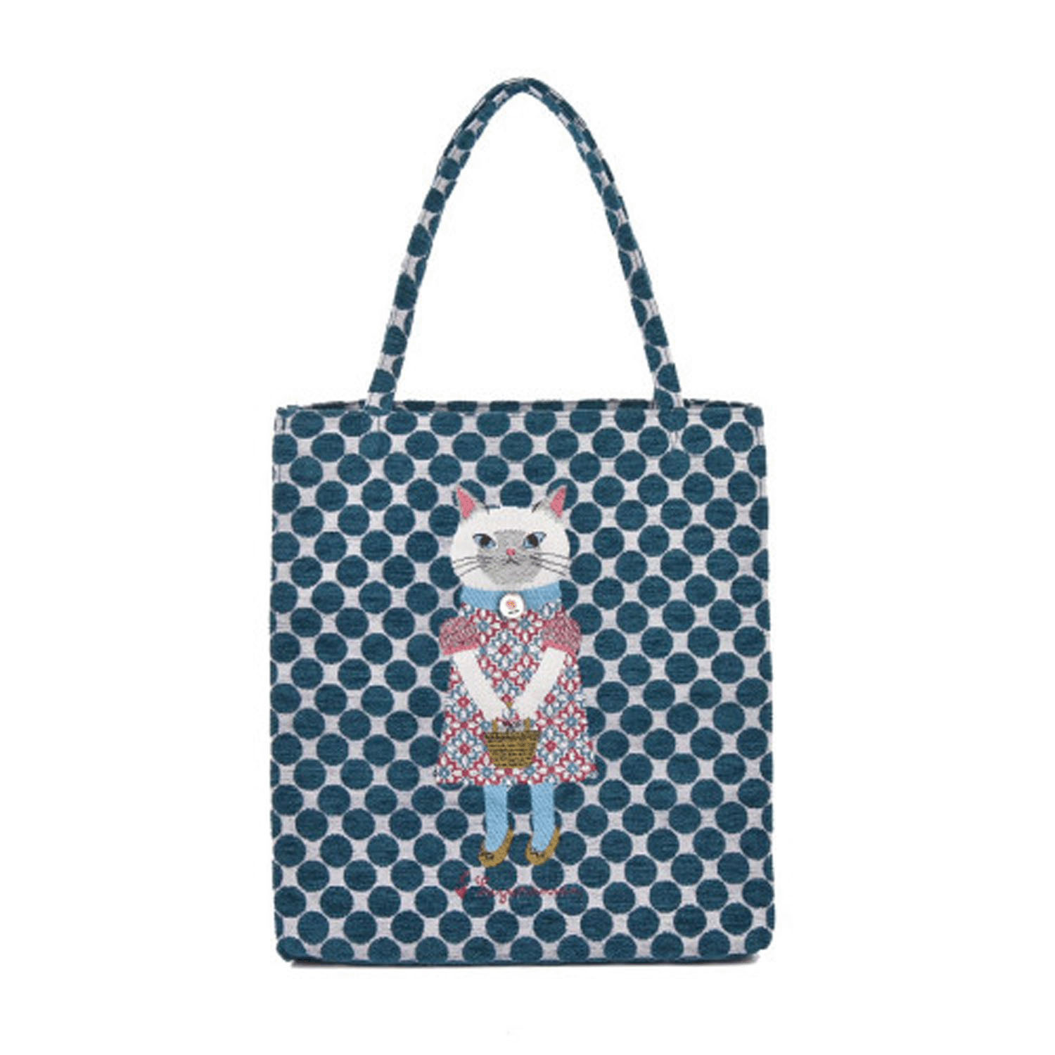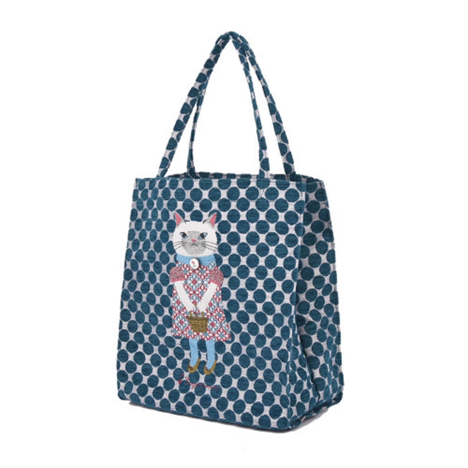 喫茶店的貓咪造型圖案以提花工藝精心編織於這款底布上。