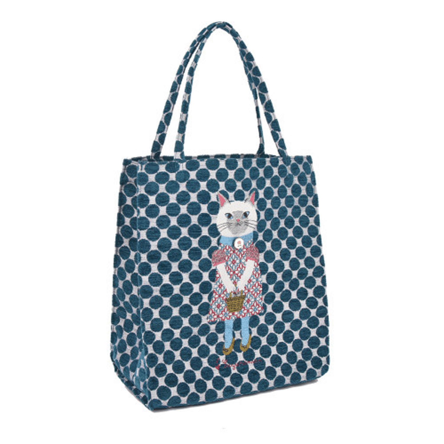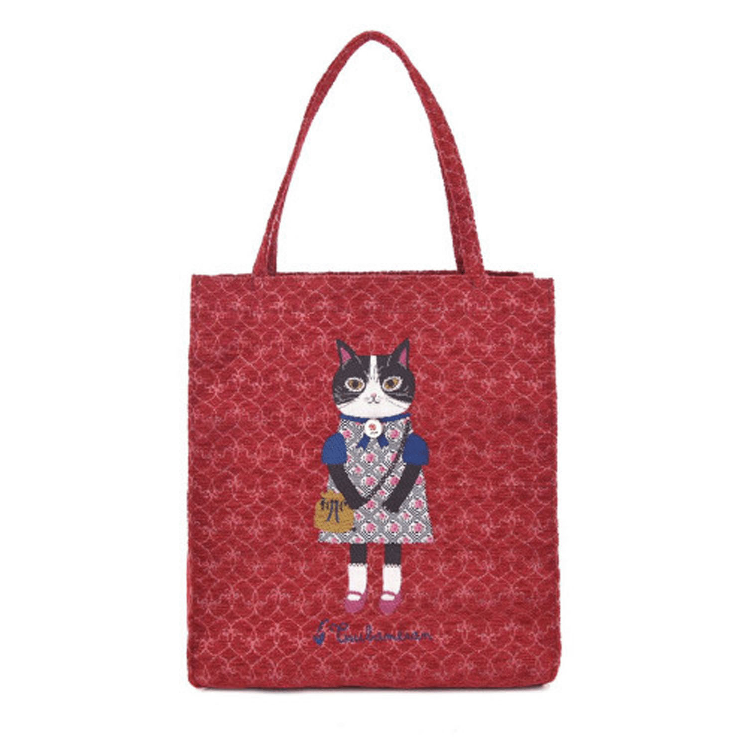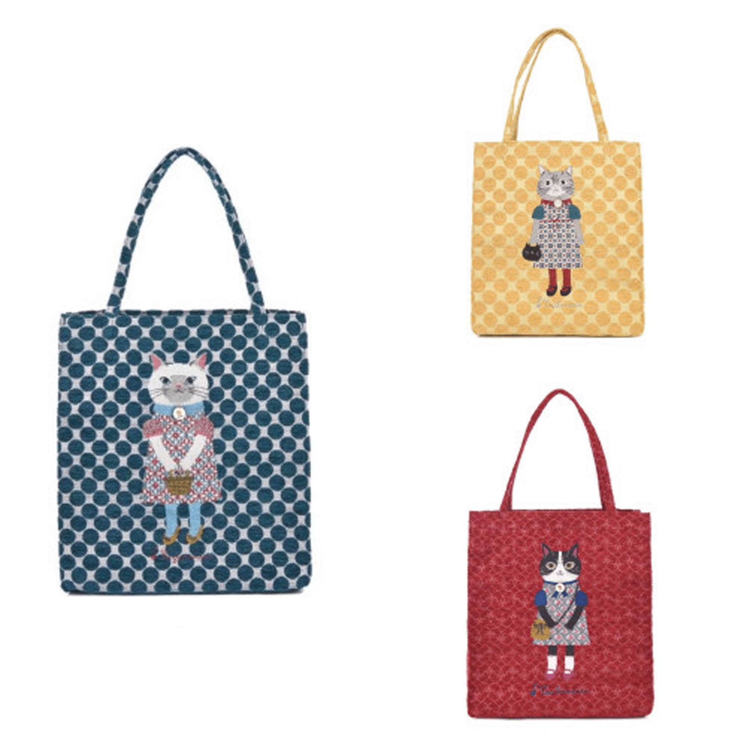 喫茶店的貓咪造型圖案以提花工藝精心編織於這款底布上。