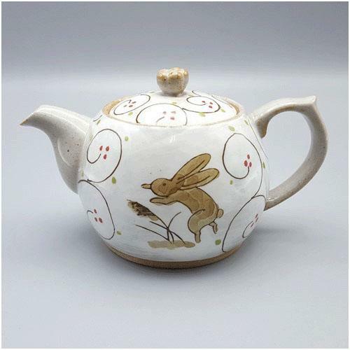 日本製【有田燒富久窯】兔子和蔓藤花紋急須茶壺