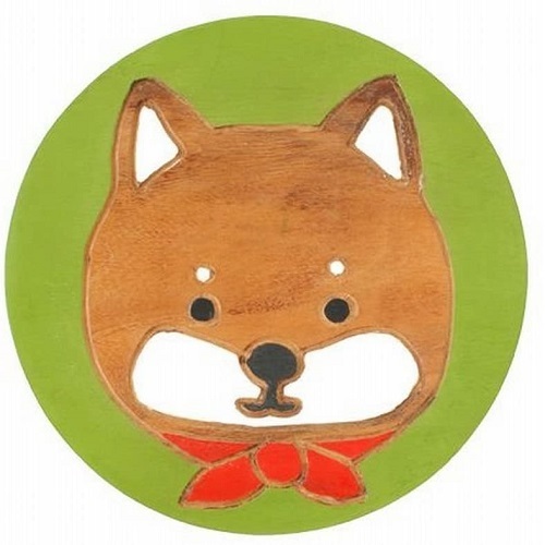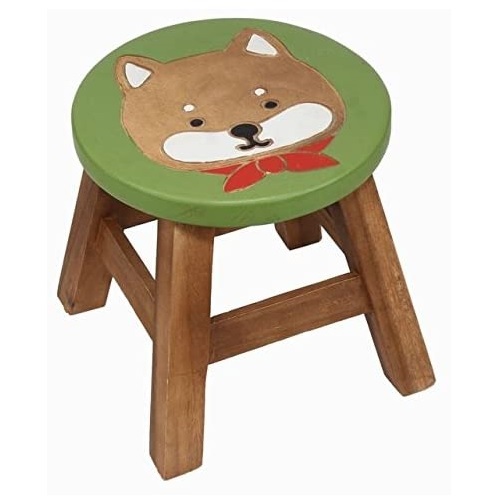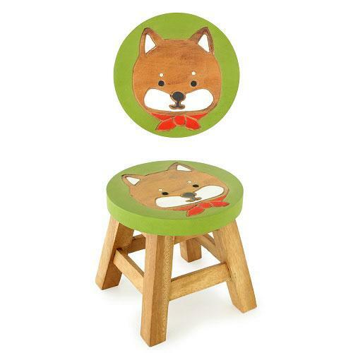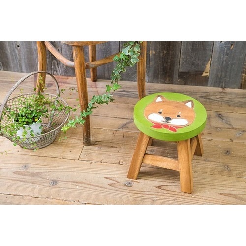 日本天然木圓凳柴犬