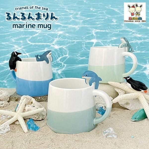 一個可愛的杯子,裡面有來自 decole 流行的 Marin 系列的海洋生物。