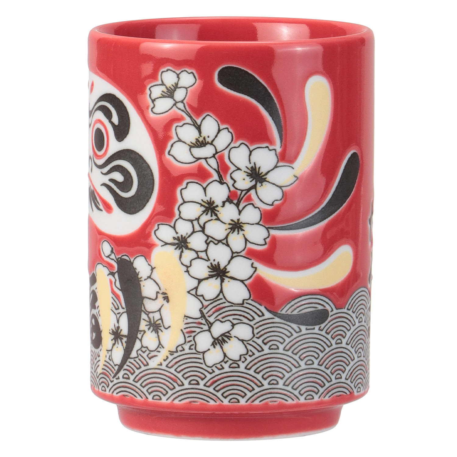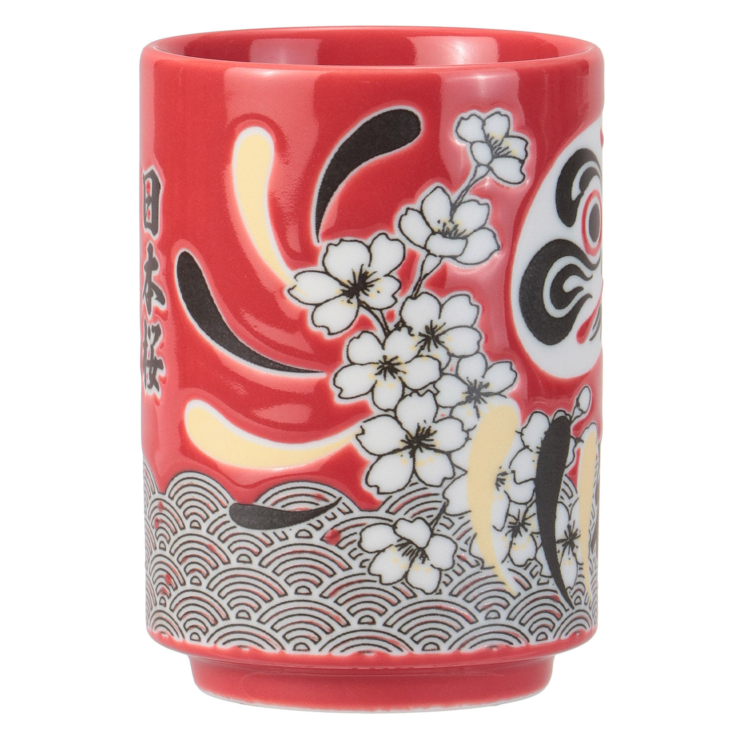 這款寓意吉祥的達摩茶杯飾有廣受歡迎的櫻花圖案。