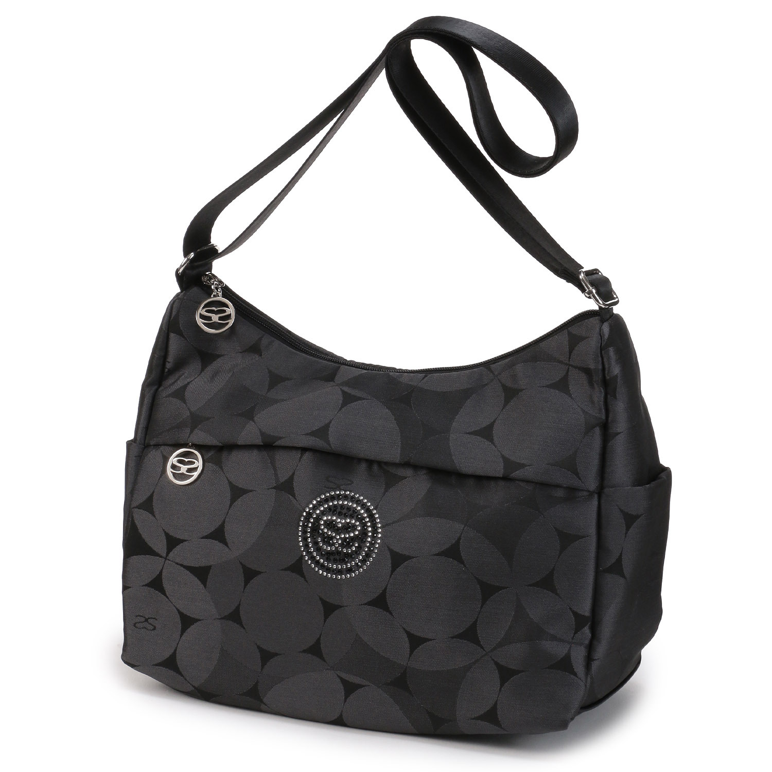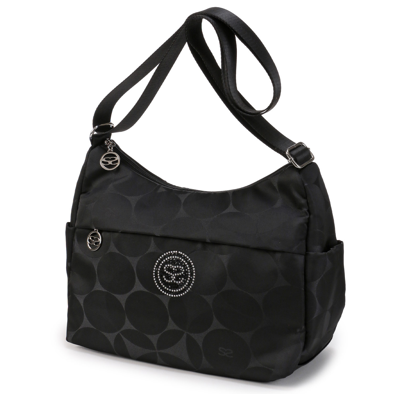 這款單肩包採用 SAVOY 經典的氣球印花和閃亮的水鑽裝飾。