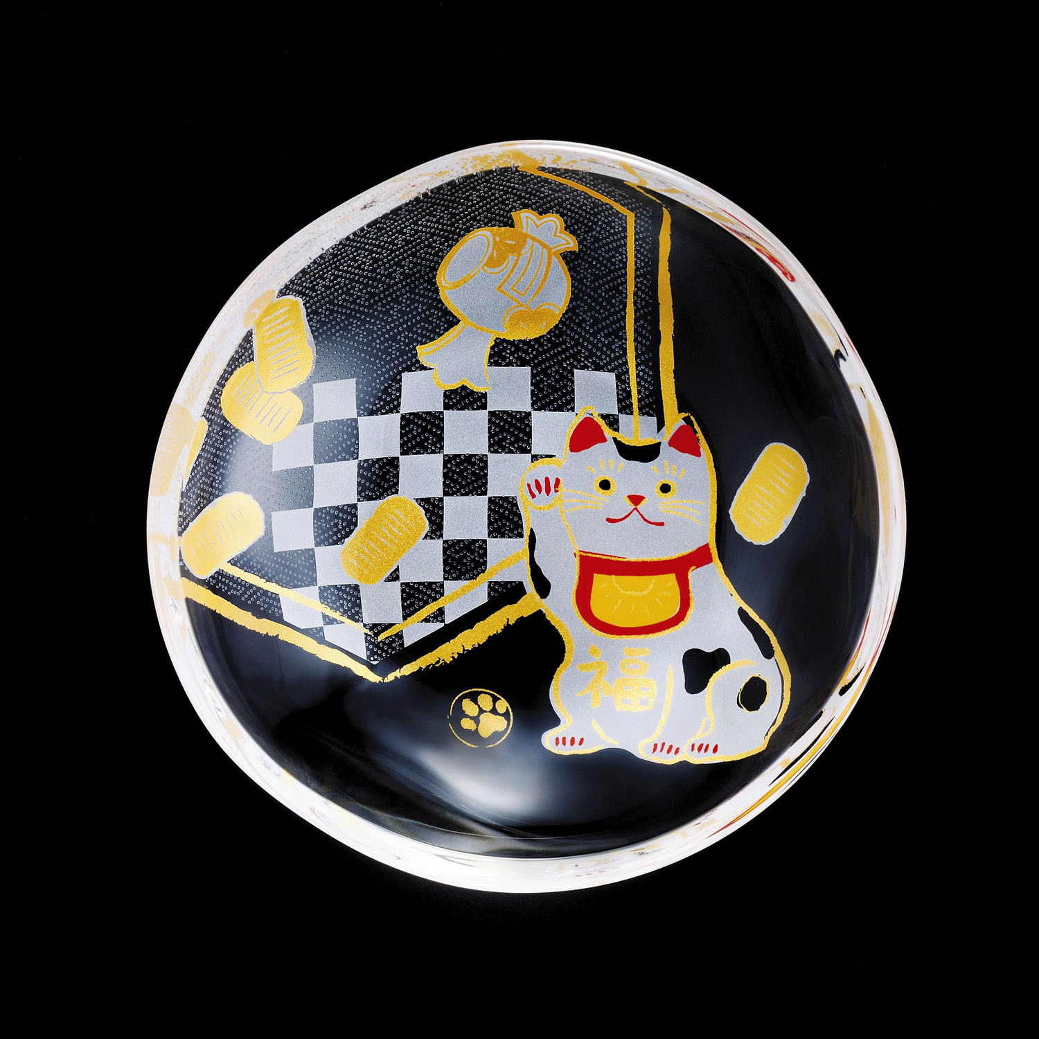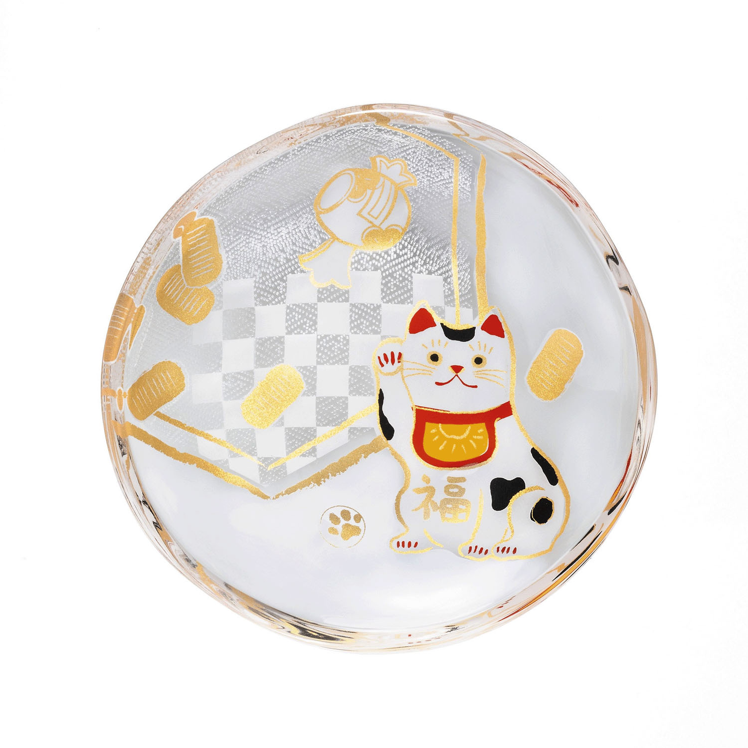 這款小碟飾有招財貓圖案,象徵著幸福。