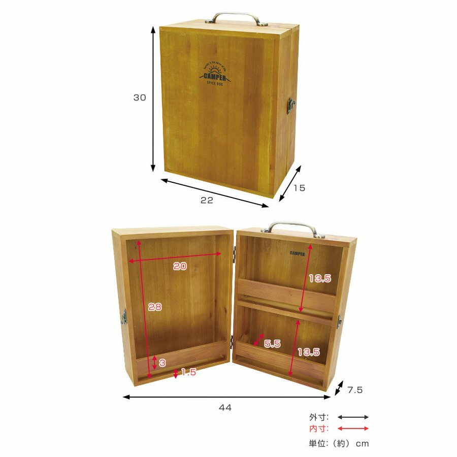コメント 人気シリーズCAMPERウッドアイテムにスパイスボックスが新登場。木のぬくもりを感じる木製でおしゃれなスパイスボックス。お気に入りのスパイスなどをそのまま外へ持ち運ぶことができる、取っ手付き収納ボックス型のスパイスラックです。ボックスを開けばたちまち自分だけのキッチンに。もちろん、家のキッチンで調味料ラックとして使用することもできます。キャンプ気分を一気に高めてくれるキャンプギアの必需品です。