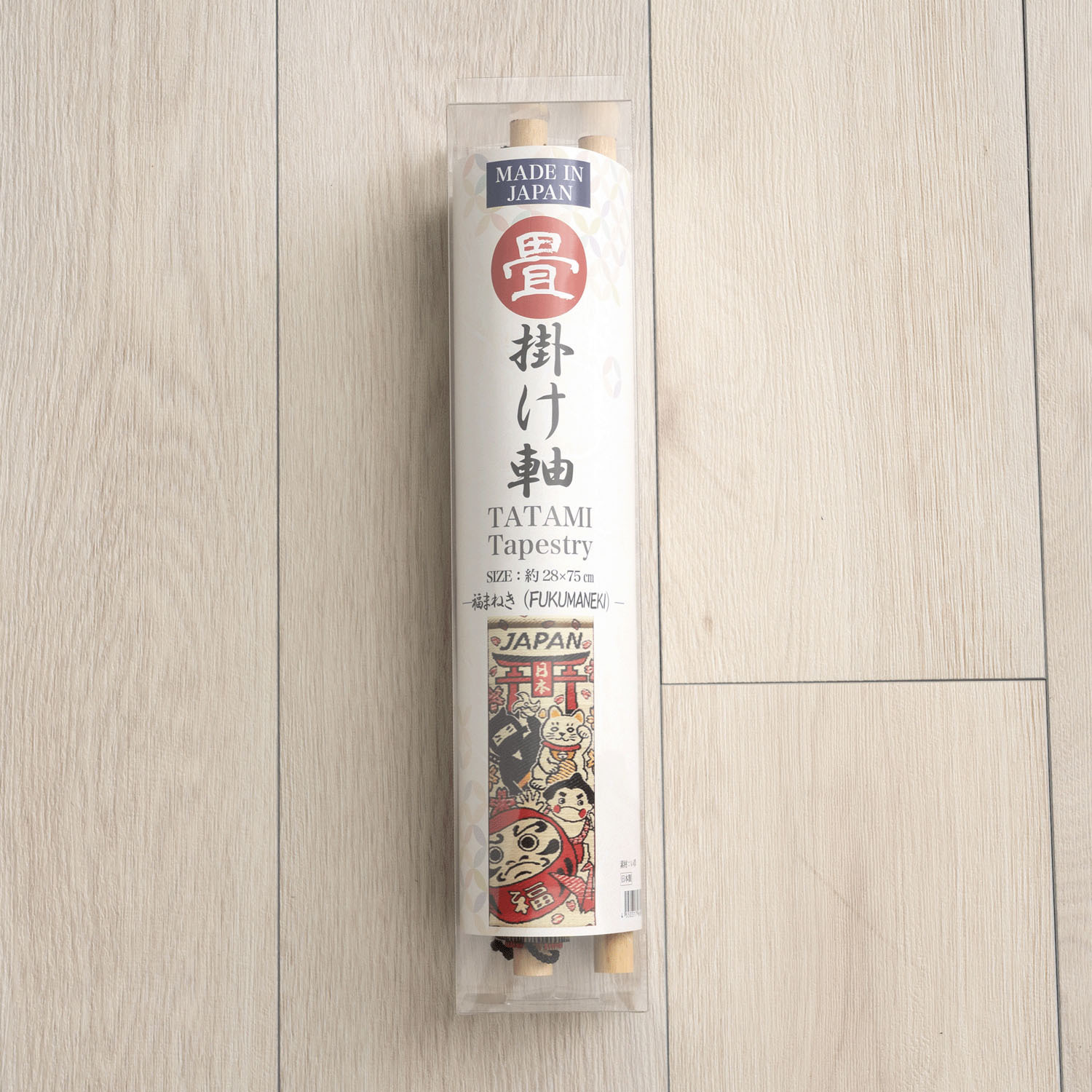 這款榻榻米掛軸(掛毯)以招財貓、忍者、達摩和相撲選手等熱門入境旅遊商品為主題。