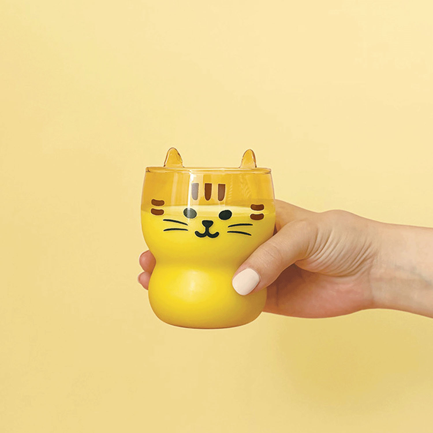 這款可愛的貓咪造型玻璃杯,擁有小巧玲瓏的耳朵。