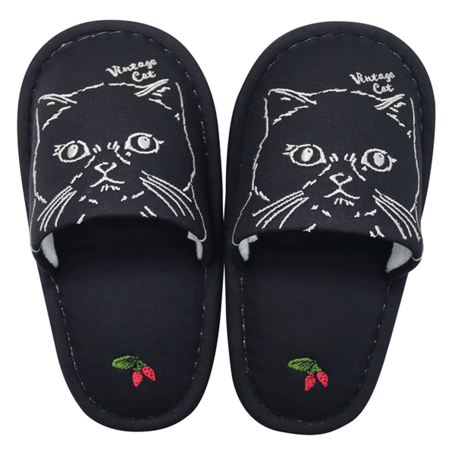鞋底飾有復古大號刺繡貓咪圖案和草莓裝飾,更添可愛氣息。