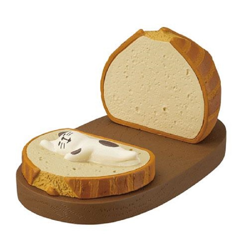 這是一個智能手機支架,它被埋在新鮮出爐的吐司麵包中,並被輕鬆的午睡貓治愈。