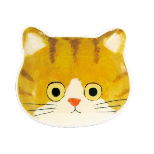 日本Ekuto Minette 貓表情小陶盤皿-茶四郎虎貓