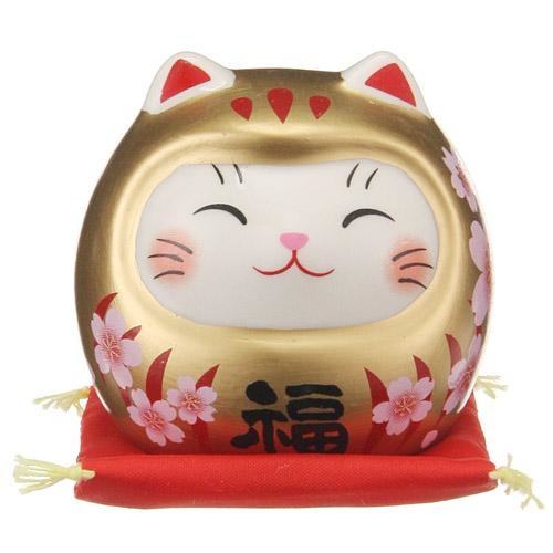 コメント 縁起物のだるまに猫がすっぽり入った置物です。