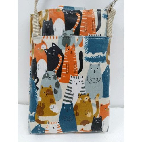 註釋這是[Standing Cat]系列的智能手機小袋,上面有彩色貓咪。