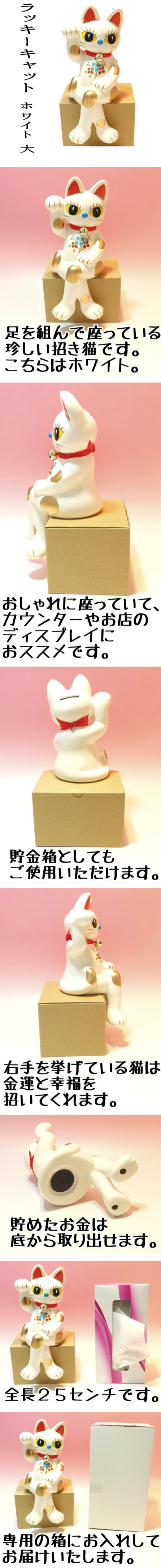 日本製招財進寶幸運貓時尚雕像存錢筒白色(大)